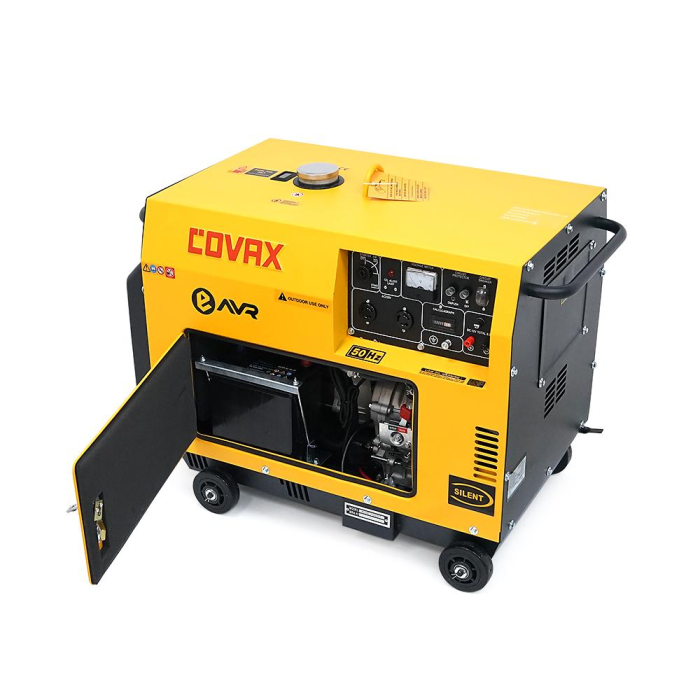 Генератор дизельный COVAX KDE7000T, 1-фазный 230V, 50Hz, 5.0kVA/4.5kW, бак 15 л, расход 1-1.2 л/ч, пуск: стартер (без АКБ), 920x520x780 мм, 145 кг (АК