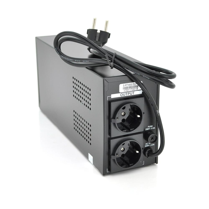 Описание к ИБП Ritar E-RTM650 (390W) ELF-L, LED, AVR, 2st, 2xSCHUKO socket, 1x12V7Ah, metal Case Q4 (310*85*140)