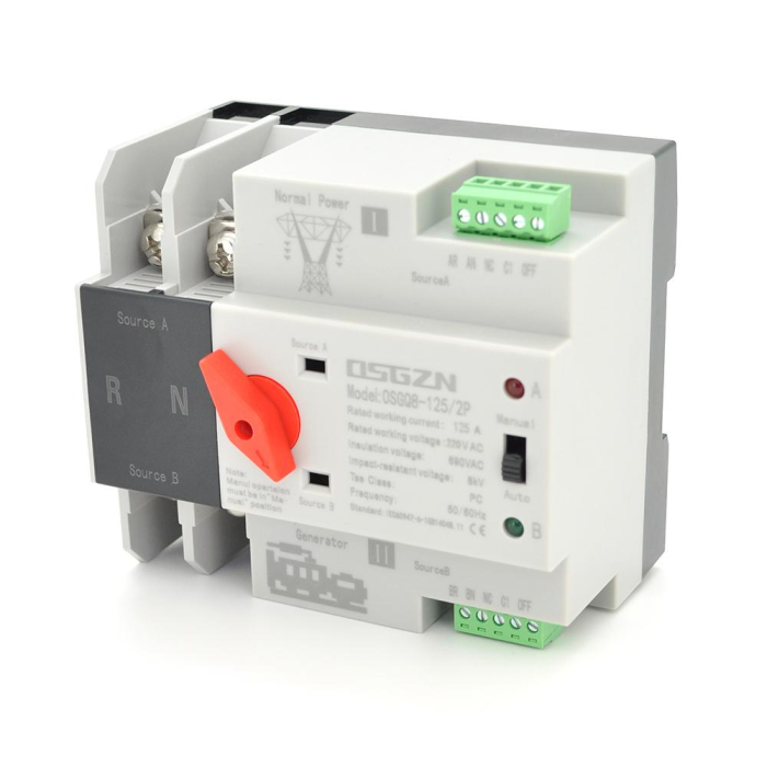 Автомат ввода резерва (АВР) двухполюсный OSGQ8-125/2P, 230V/125A на DIN-рейку для генераторов