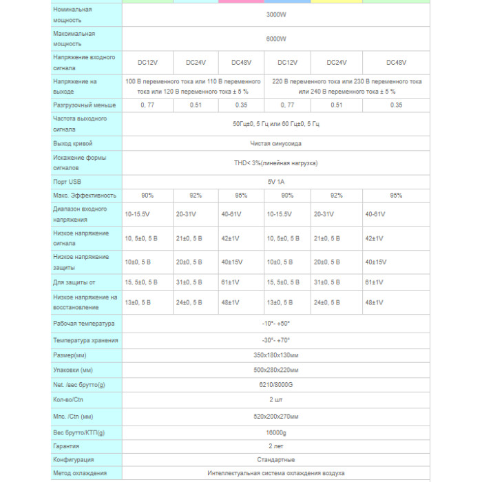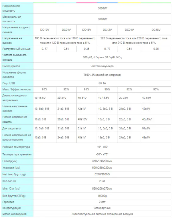 Характеристики для Інвертор 12V–220V 6000Вт із чистою синусоїдою та функцією зарядки АКБ