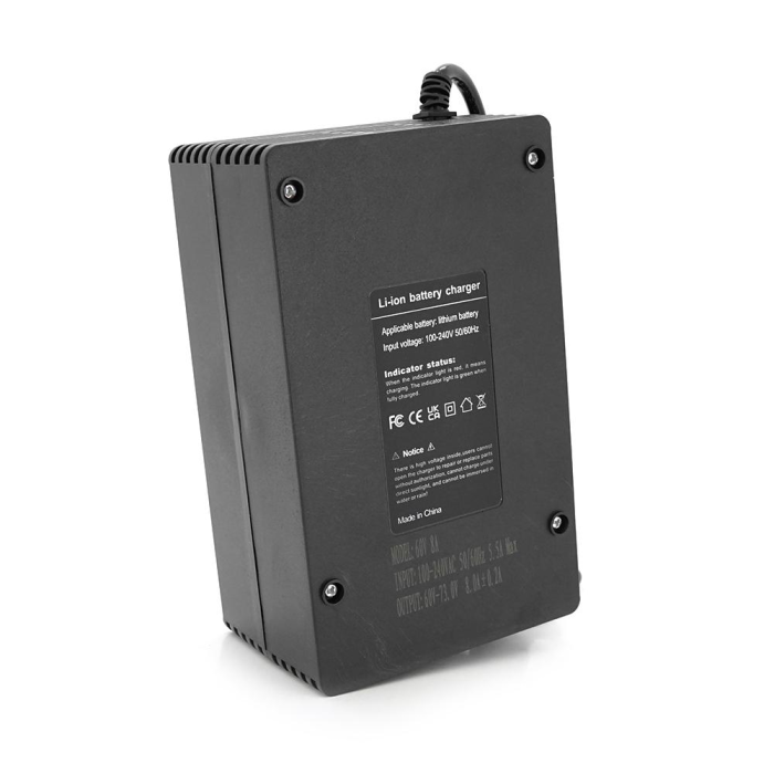 Зарядний пристрій для акумуляторів LiFePo4 60V(73V),20S,8A,650W, індикація, штекер Triangle plug (T-tipe/C13/IEC). 220х122х86mm, 1.5kg
