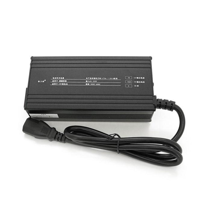 Зарядний пристрій акумуляторів LiFePO4 12V (14.6V), 4S, 10A, штекер Triangle plug (T-tipe/C13/IEC). LED-індикація, 137x90x50mm