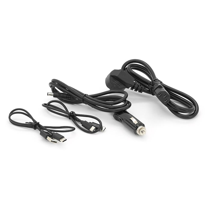 Конструкція FLACHSPEED 1000 Вт, 1* Кабель для зарядки від мережі змінного струму, 1* Автомобільний кабель для зарядки, 1* Кабель USB-A - USB-C, 1* Кабель USB-C - USB-C 1 посібник з виробництва продукції.