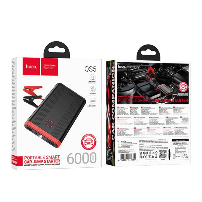 Пусковий прилад для акумулятора автомобіля JUMP STARTER HOCO QS5, Power Bank 6000mAh, Box